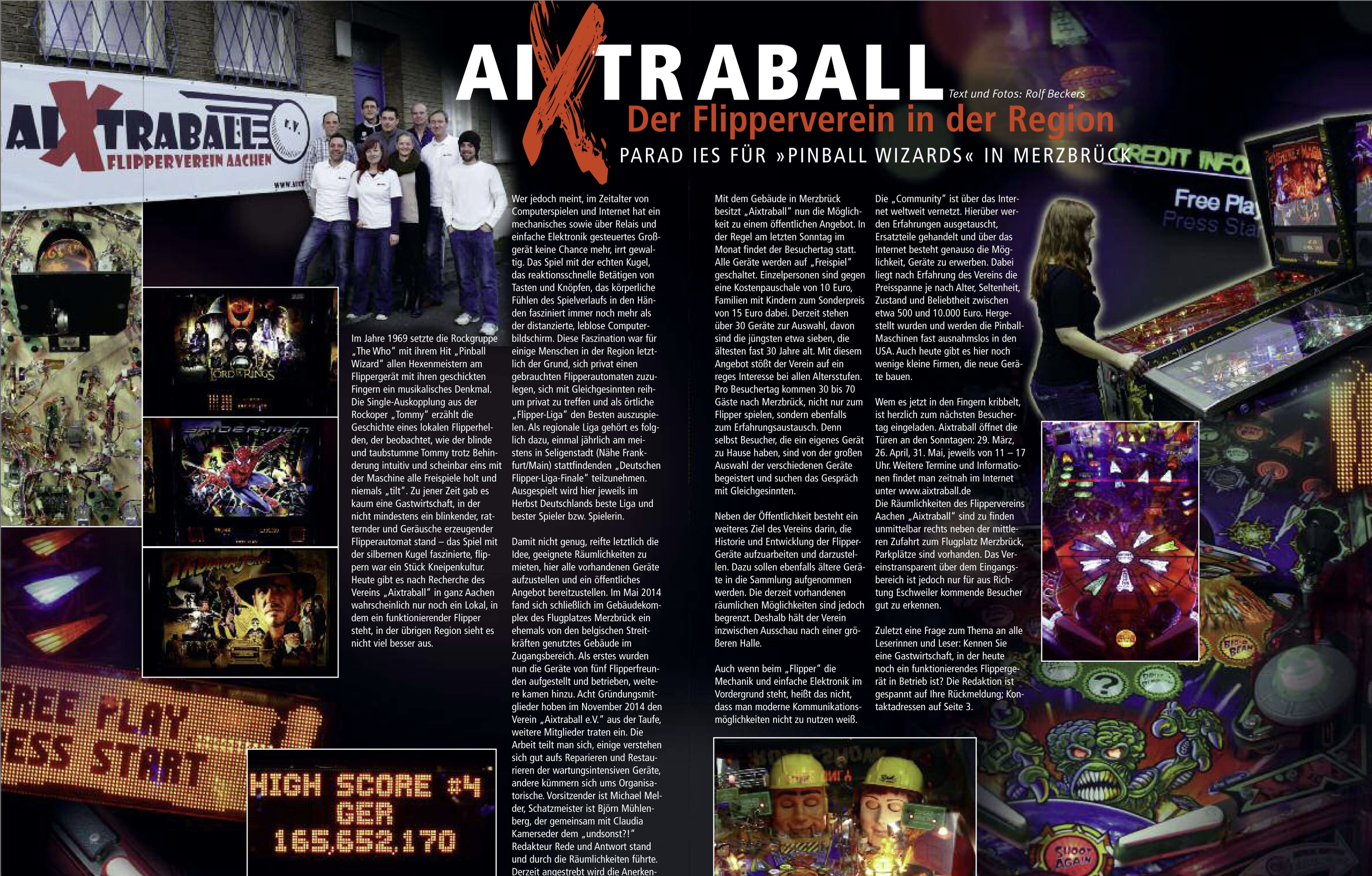 Seit 2002 befasst sich das Alsdorfer Stadtmagazin »undsonst?!« mit aktuellem und spannendem Wissen über Land und Leute, Technik und Fortschritt, Freizeit und Kultur, Gesundheit und Wohlbefinden. Vor ein paar Wochen hat uns das Team in unserer Flipperhalle in Aachen-Merzbrück besucht. Aixtraball stand den Reportern Rede & Antwort. Aus den Interviews und den zahlreichen Fotos ist dieser tolle Beitrag entstanden.